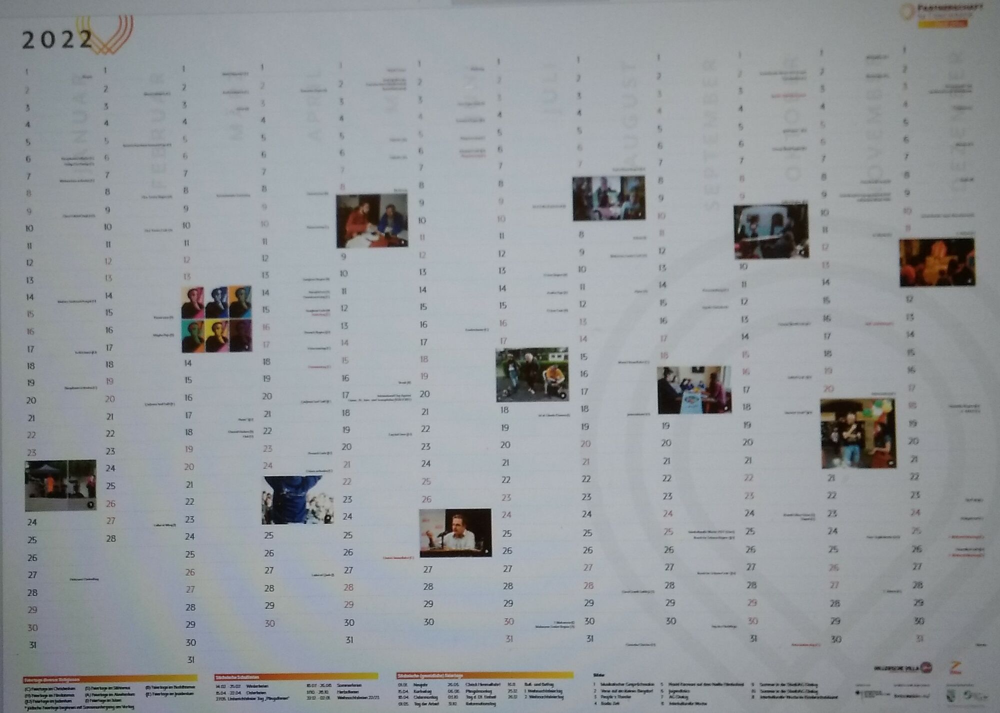 Ob fürs Büro oder als Familienplaner – ein großformatiger Wandplaner ist ab sofort in der Hillerschen Villa erhältlich. Der Kalender ist ansprechend gestaltet und informativ. So geben Fotos Einblicke in Projekte verschiedener Organisationen, die im vergangenen Jahr in Zittau stattfanden und durch die Partnerschaft für Demokratie gefördert wurden. Neben den Terminen der sächsischen Feiertage und Schulferien enthält der Wandplaner wichtige Feiertage verschiedener Religionen und Jahrestage, die für Demokratie und Vielfalt stehen.